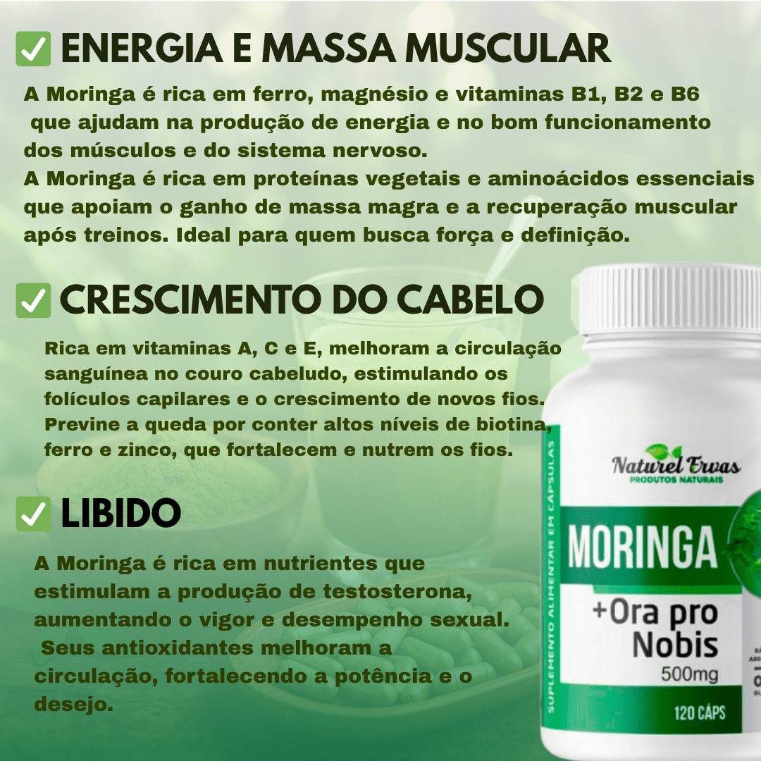 Conteúdo: Ora pro nobis e moringaIngredientes 100% puros e naturais